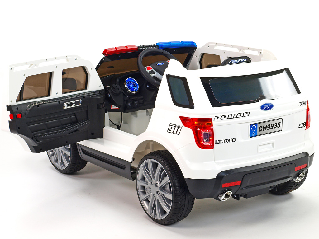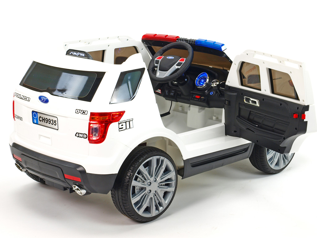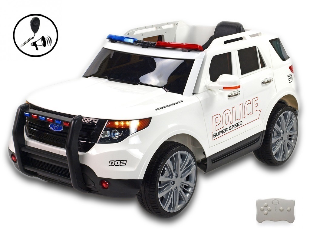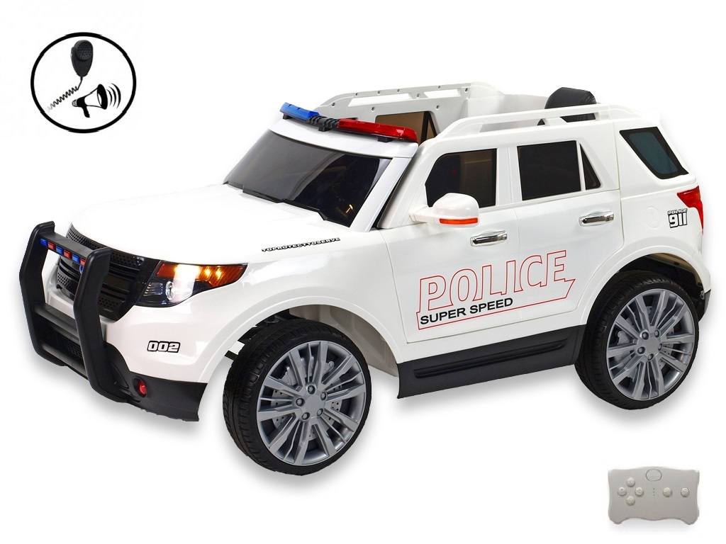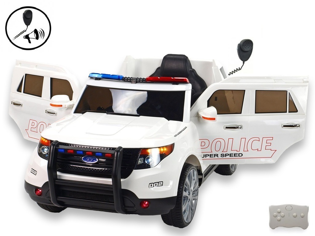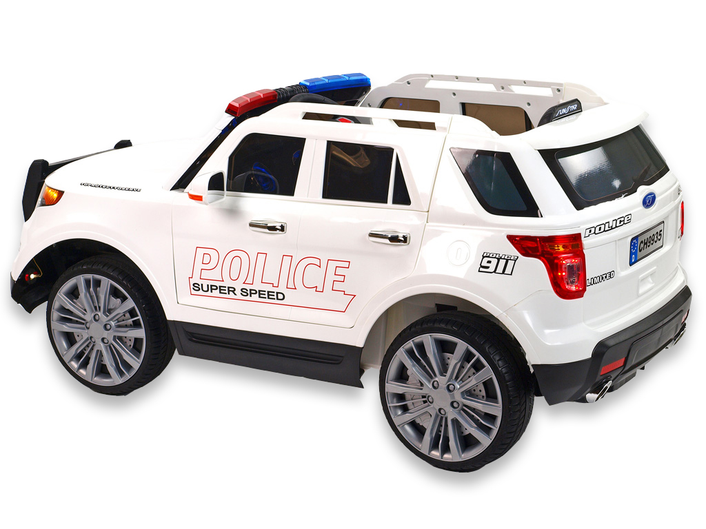 Elektrické auto USA policie s 2,4G, megafonem, policejní LED a zvukovými efekty je dokonalým doplňkem pro malé policisty. S funkcemi jako bílé audio player, FM rádio, USB, SD vstup, Mp3, voltmetr pro kontrolu nabití baterie, policejní megafon, klakson, siréna USA policie, muzika, start motorů, přední a zadní LED světla, blikající světla policie a možností vypnutí osvětlení přístrojů poskytuje nekonečné hodiny zábavy a dobrodružství. Jízda na pedál nabízí 2 rychlosti vpřed/vzad, 3 rychlosti jízdy na DO + zatáčení, a přednostní jízda na DO před pedálem, umožňující řídit auto pomocí ovladače. Dále nabízí náhon zadních kol s 2x motory 12V/45W, EVA kola z měkčeného plastu pro tichou a pohodlnou jízdu, otvírací dveře, sedačku s bezpečnostním pásem, odpružení přední a zadní nápravy, výsuvné madlo a zadní kolečka pro ruční tažení nebo tlačení. Navíc, při nesešlápnutém pedálu, převod motorů nahrazuje brzdu nebo je možné brzdit tlačítkem na DO. Policejní auto nevyžaduje mimo dobíjení a mytí žádnou další údržbu, a nabízí náhradní díly na skladě za nákupní ceny pro spokojenost zákazníků. Je CE certifikováno, a k dodávce přikládáme návody, odkaz na podrobný český návod k sestavení a fakturu. Dodáváme v kartonu 123x64x36cm, váží 26kg. Pro porovnání velikosti se dětmi nahlédněte na fotografie.