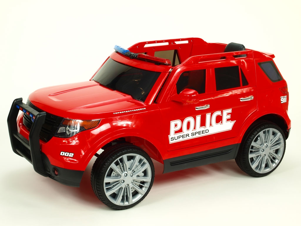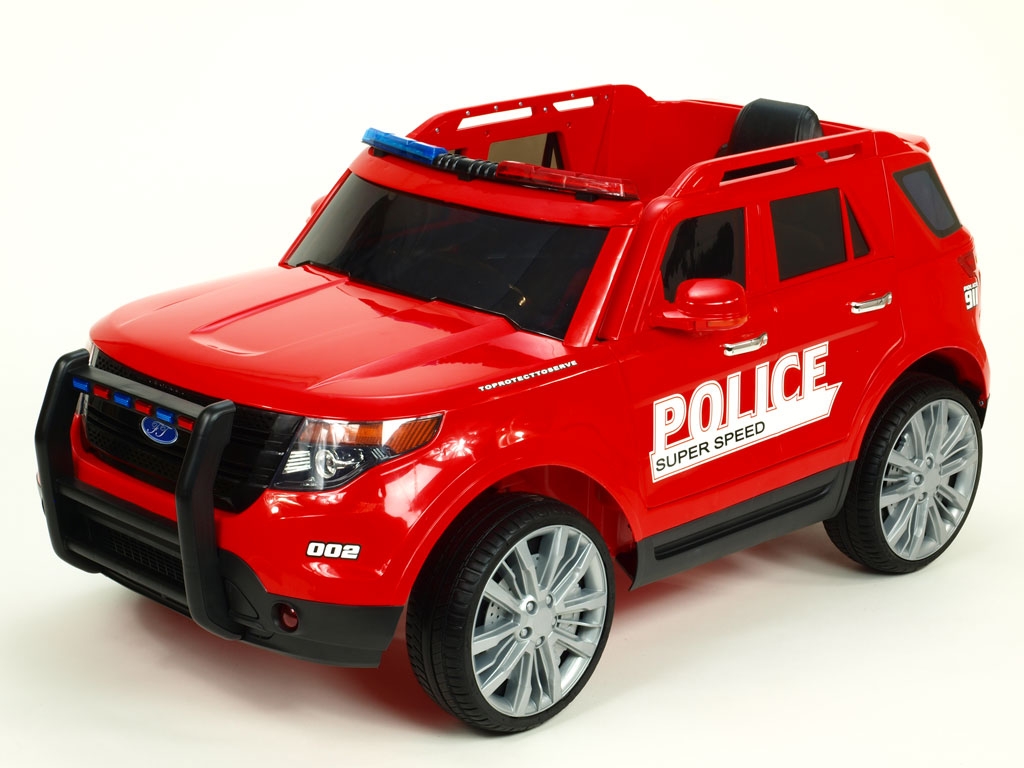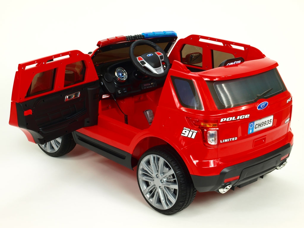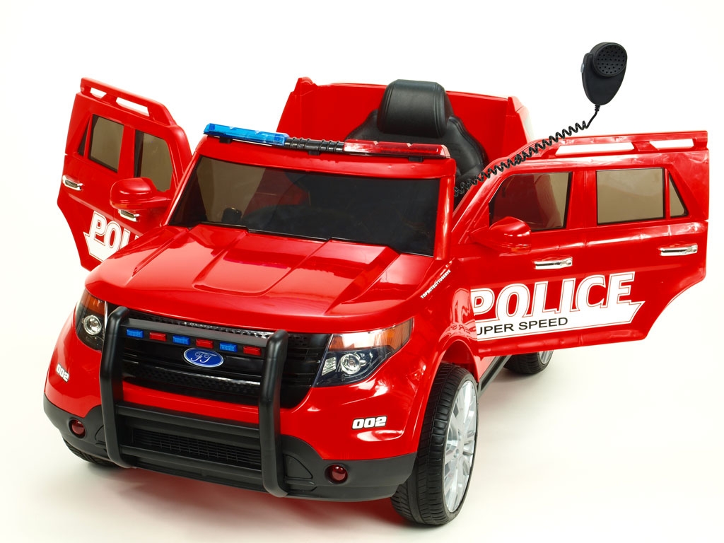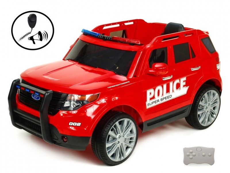 Elektrické auto USA policie s 2,4G, megafon, policejní LED a zvukové efekty, červené
