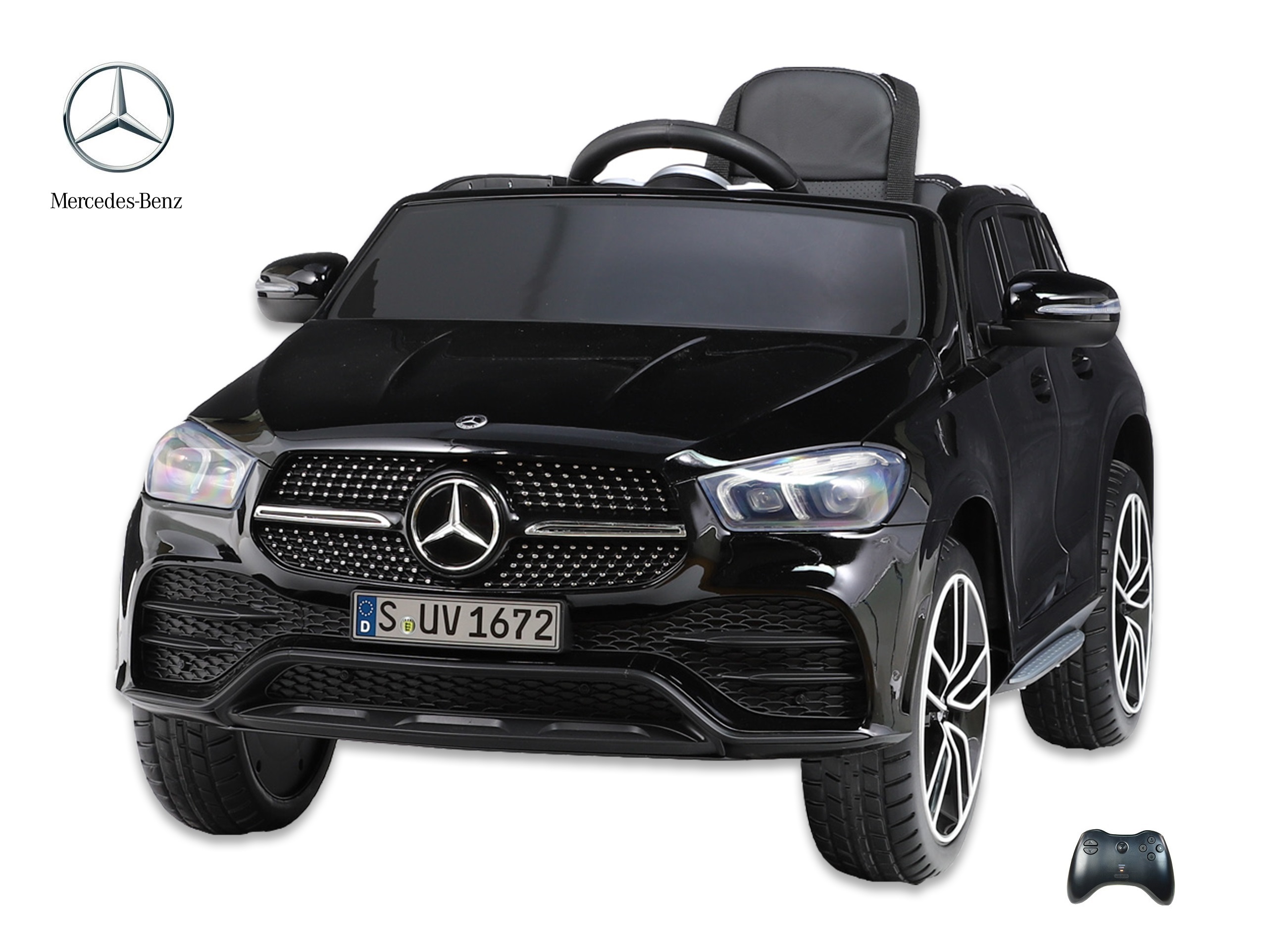 audio player s USB, TF, Mp3 vstupem, voltmetr nabití baterie, barevná LED hudba, klakson, muzika, start motorů, přední a zadní LED světla s možností vypnutí, osvětlení přístrojové desky, jízda na pedál vpřed/ vzad, 3 rychlosti jízdy na DO + zatáčení, s přednostní jízdou na DO před pedálem, tzn. můžete dítě ovladačem zastavit, při nesešlápnutém pedálu převody motorů nahrazují brzdu nebo brzdíte tlačítkem na DO, otvírací dveře, čalouněná vyšívaná sedačka s 3 bodovým bezpečnostním pásem, odpružení zadní nápravy, EVA kola z měkčeného plastu s tichou a příjemnou jízdou, výsuvné madlo a zadní kolečka pro ruční tažení, Mercedes GLE 450 nevyžaduje mimo dobíjení a mytí jinou údržbu, náhradní díly na skladě, pro naše zákazníky prodej dílů a baterií za nákupní ceny, CE certifikace a licence Mercedes dokládána celnici při dovozu, přikládáme návody, odkaz na podrobný focený český návod k sestavení a fakturu, odesíláme v kartonu 116x61x40cm, váha 24kg, pro porovnání velikosti prohlédněte foto s dětmi,