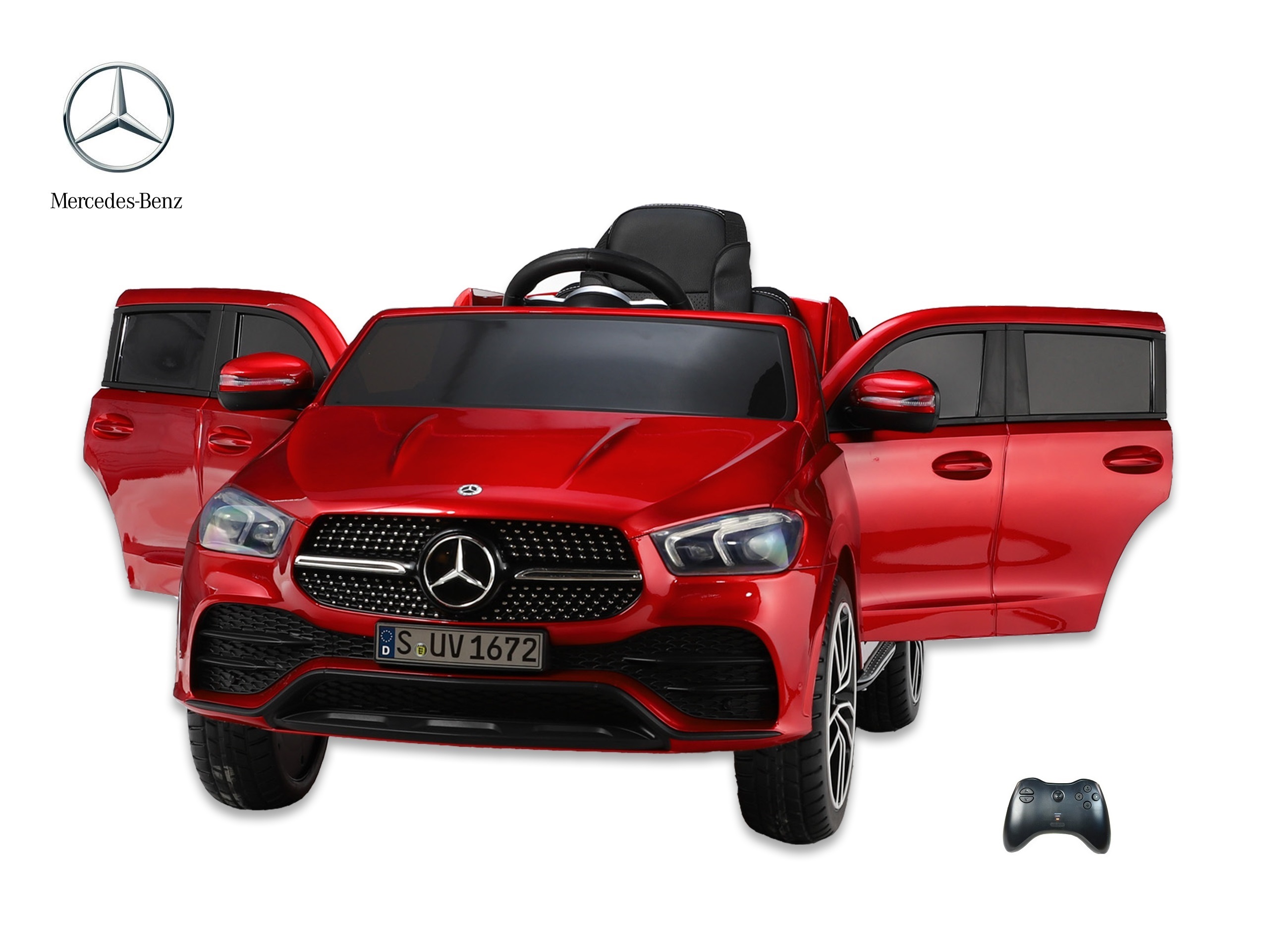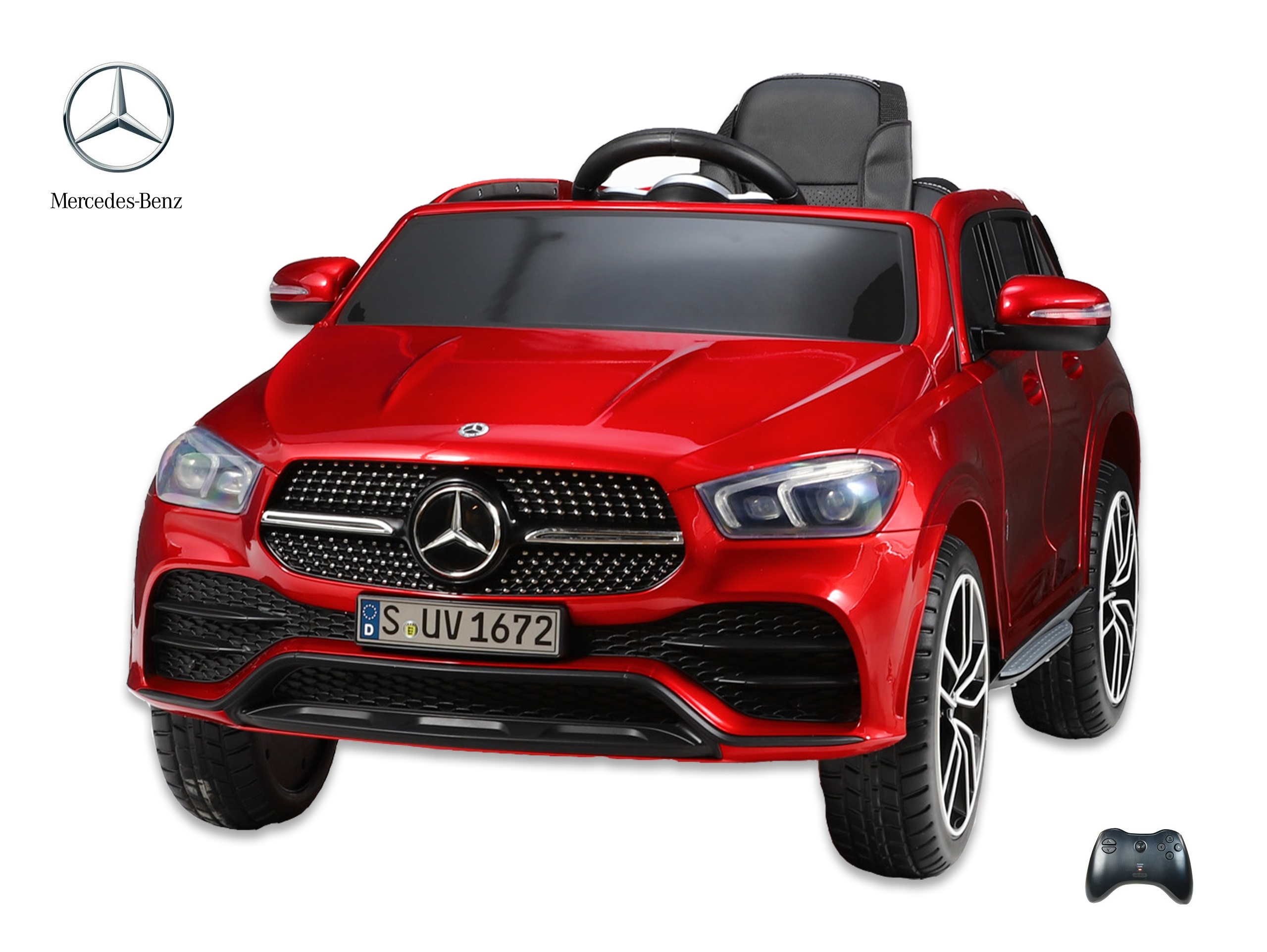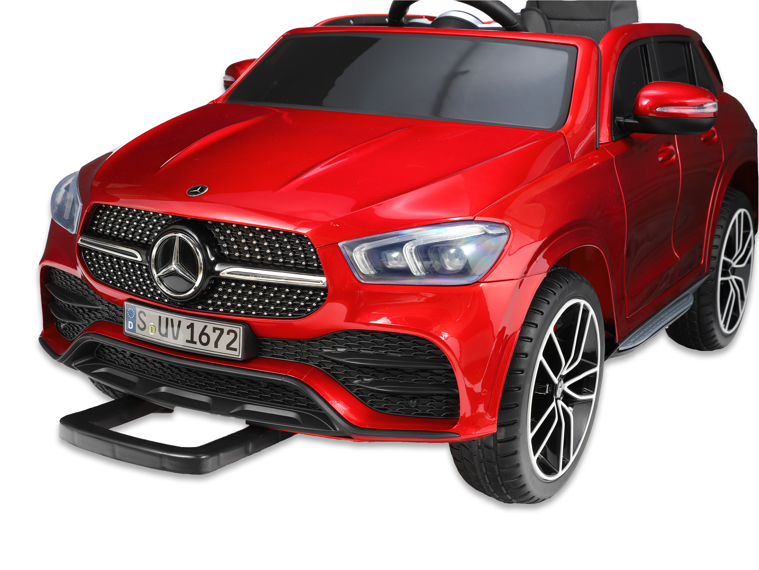 audio player s USB, TF, Mp3 vstupem, voltmetr nabití baterie, barevná LED hudba, klakson, muzika, start motorů, přední a zadní LED světla s možností vypnutí, osvětlení přístrojové desky, jízda na pedál vpřed/ vzad, 3 rychlosti jízdy na DO + zatáčení, s přednostní jízdou na DO před pedálem, tzn. můžete dítě ovladačem zastavit, při nesešlápnutém pedálu převody motorů nahrazují brzdu nebo brzdíte tlačítkem na DO, otvírací dveře, čalouněná vyšívaná sedačka s 3 bodovým bezpečnostním pásem, odpružení zadní nápravy, EVA kola z měkčeného plastu s tichou a příjemnou jízdou, výsuvné madlo a zadní kolečka pro ruční tažení, Mercedes GLE 450 nevyžaduje mimo dobíjení a mytí jinou údržbu, náhradní díly na skladě, pro naše zákazníky prodej dílů a baterií za nákupní ceny, CE certifikace a licence Mercedes dokládána celnici při dovozu, přikládáme návody, odkaz na podrobný focený český návod k sestavení a fakturu, odesíláme v kartonu 116x61x40cm, váha 24kg, pro porovnání velikosti prohlédněte foto s dětmi,